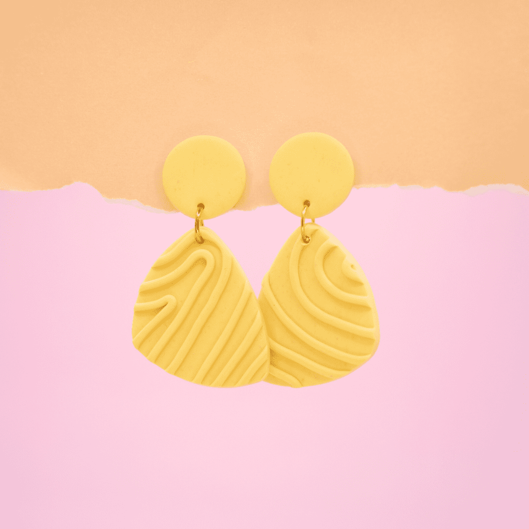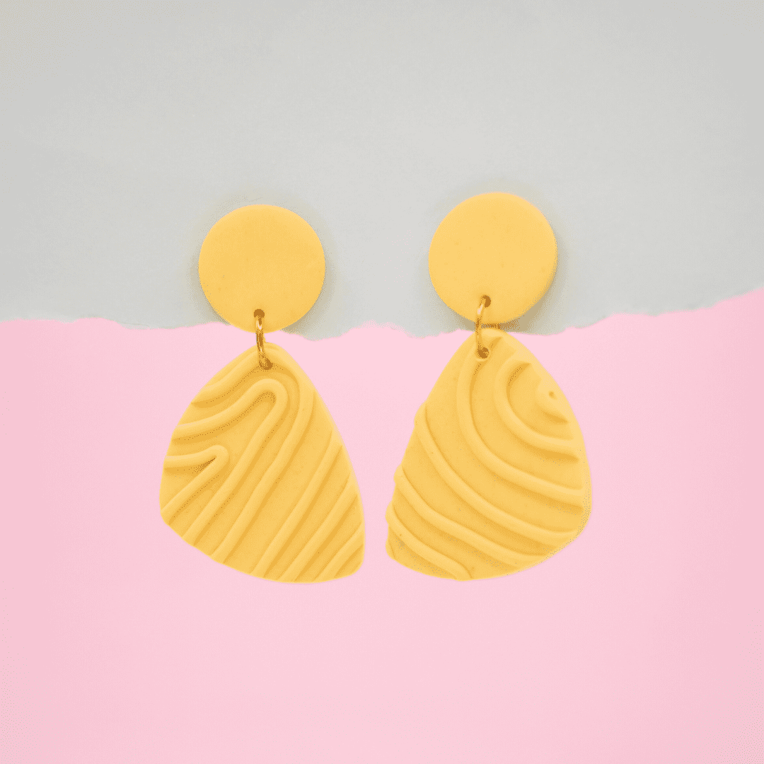 Sumérgete en la elegancia serena de la colección Viena. Inspirada en la sofisticada ciudad de Viena, estos pendientes capturan la esencia de la capital austríaca con su tono amarillo apagado y una textura abstracta de líneas suaves. El círculo superior irradia una sensación de calma, mientras que la forma abstracta en la parte inferior añade un toque de refinamiento.